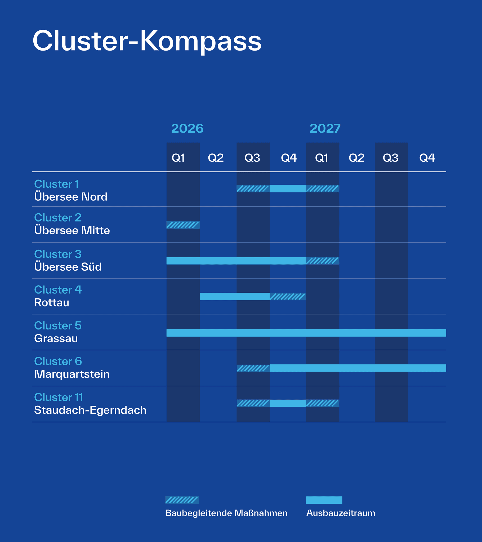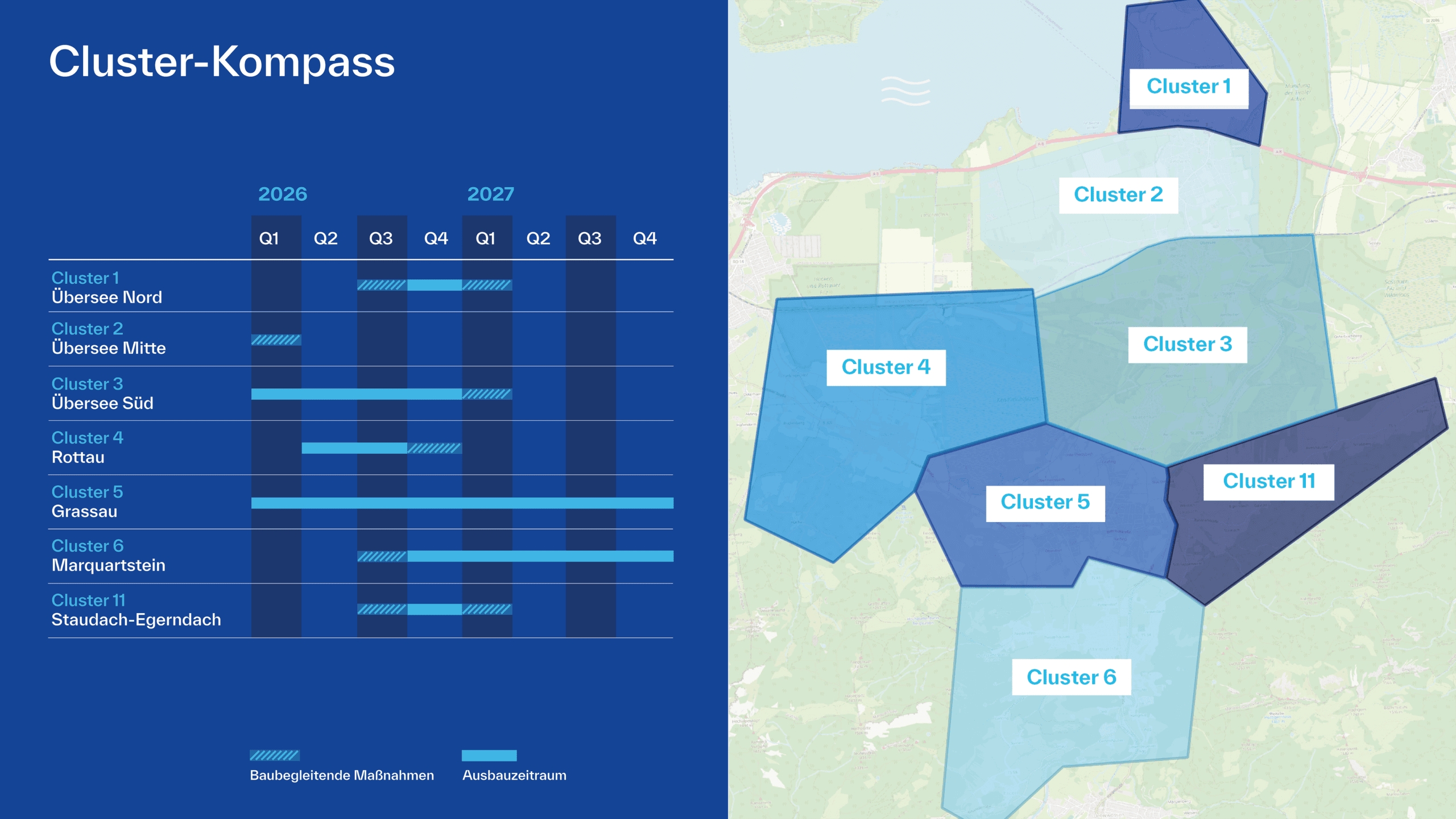 Glasfaserausbau Achental, Karte in Clustern und Ausbaustatus für 2026 gegliedert.